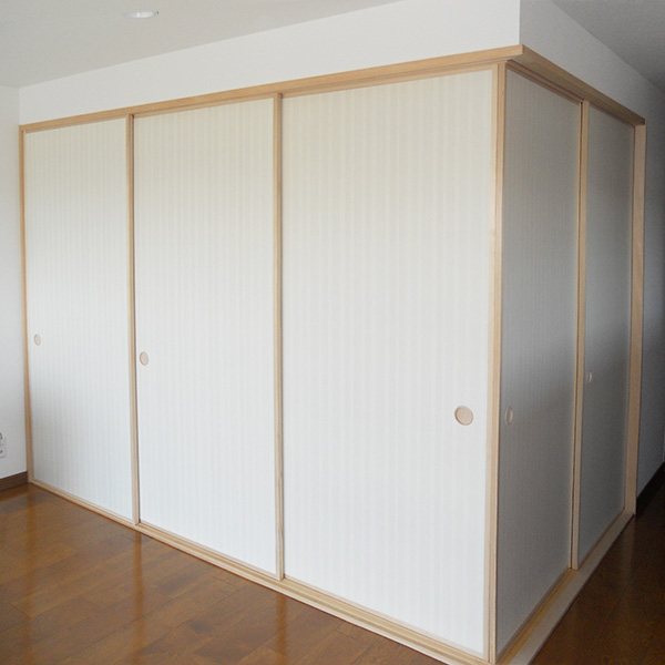 建具を引戸に変更しました。LDKの扉は全面開口のハイドア。天井まである扉が壁に収まってしまいます!