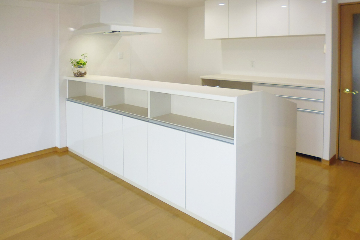 吊戸を取り払いオープンにしたことで長く居るキッチンが明るく居心地のよい場所となりました。