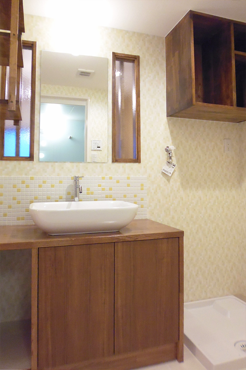 洗面台やキッチン背面収納もリ・ライフオリジナル造作家具です。