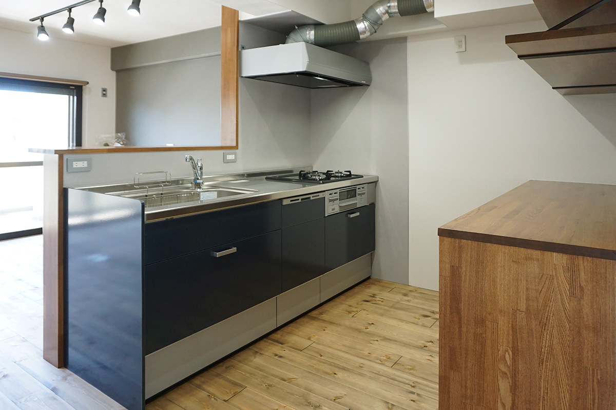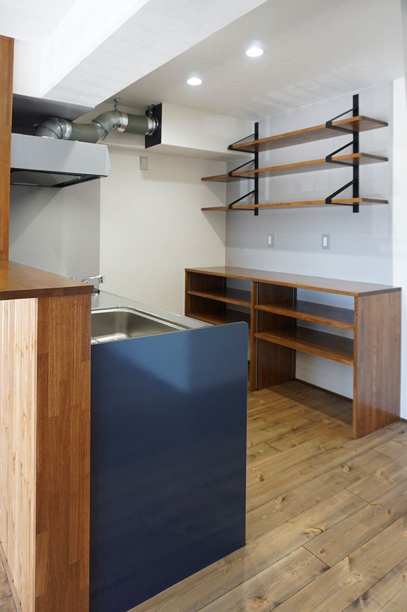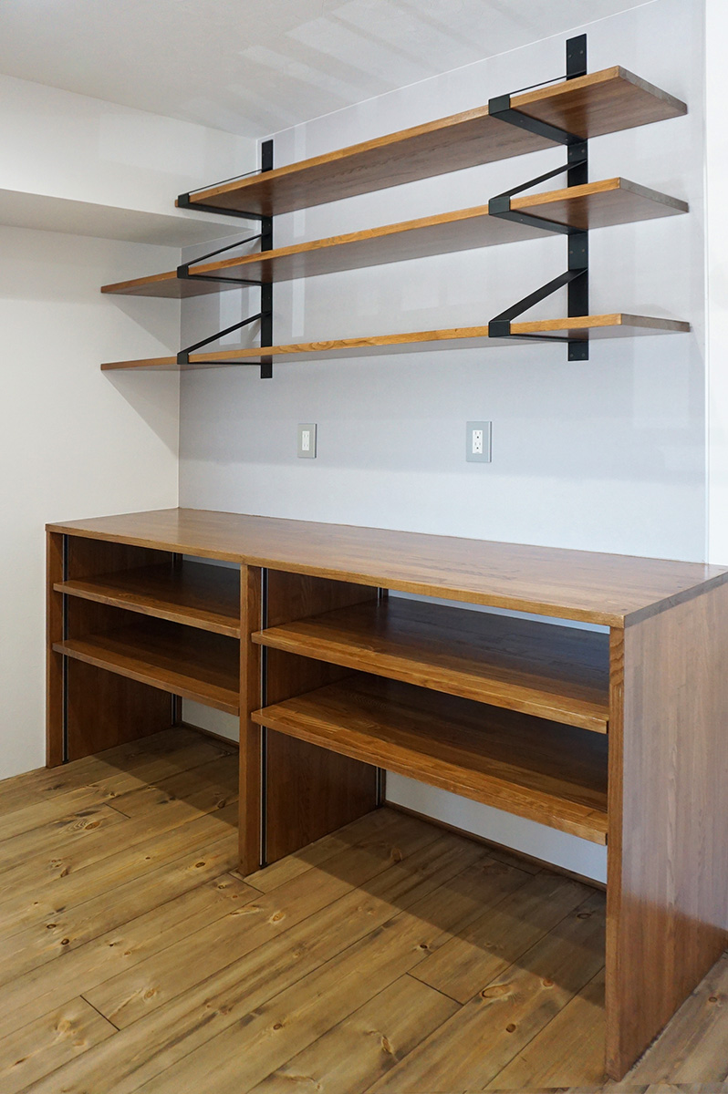 キッチン収納や本棚はY様のご要望を聞きながら形にしたものです。オリジナル造作家具ならでは!です。