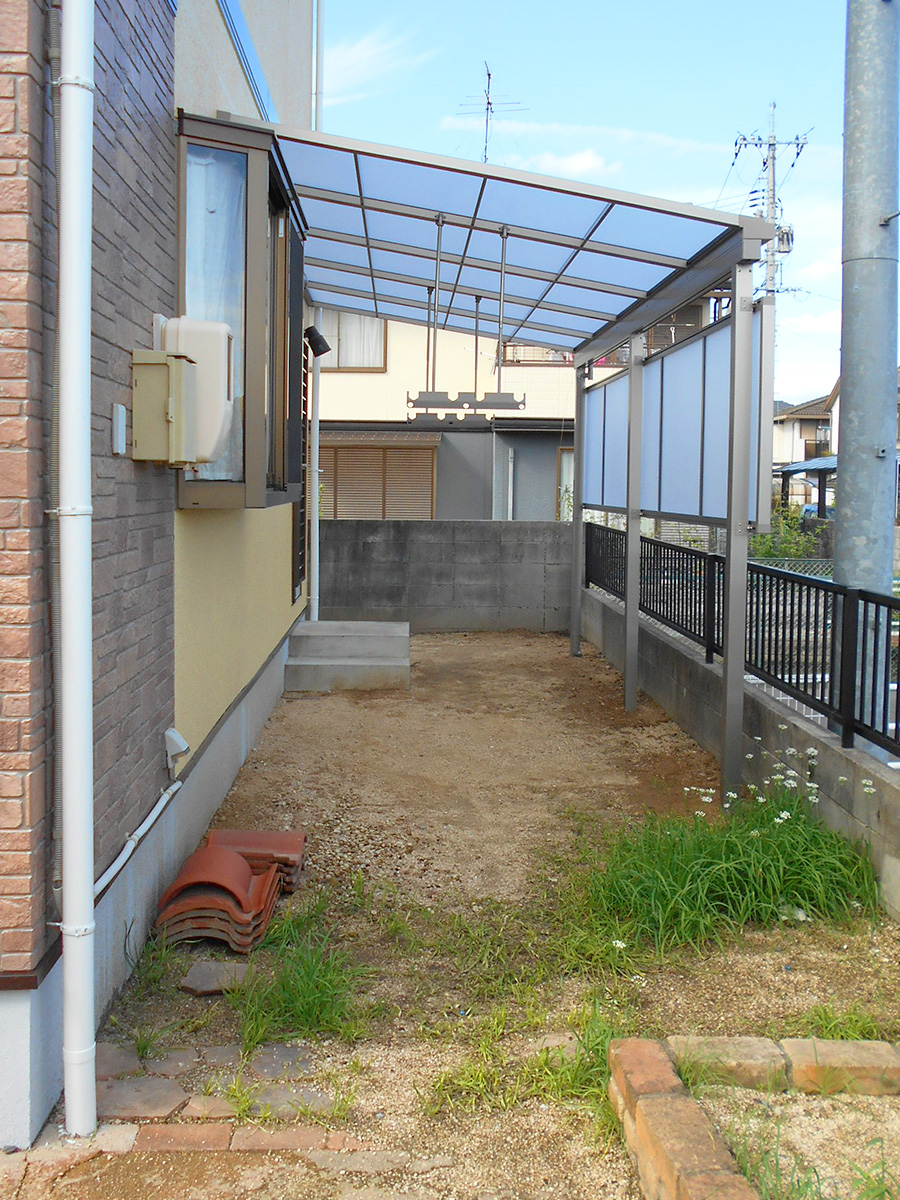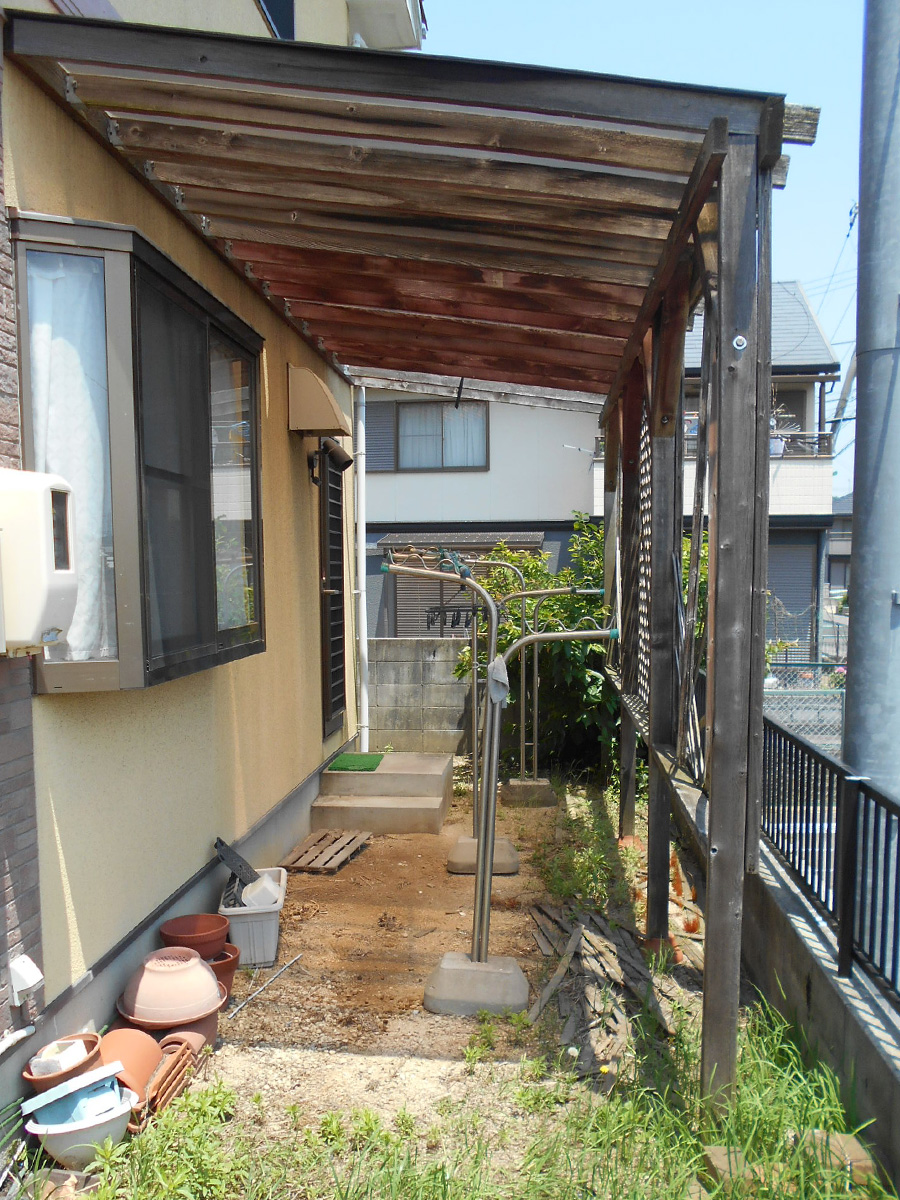 木製で腐食していた洗濯物干し場の屋根をアルミ製のテラス屋根にチェンジ!雨風にさらされるのでアルミ製がおすすめです。