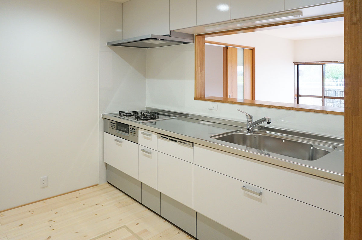 キッチンは対面キッチンに。H様ご一家は皆様身長が高いので、キッチンの高さや吊戸棚の高さなどH様の使い勝手を確認しながら決めていただいたのでジャストフィット!すっかりH様カラーに生まれ変わりました。