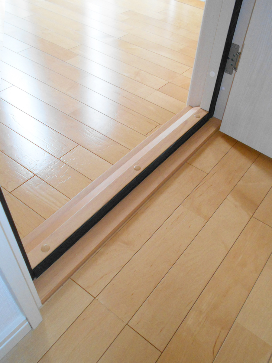 まずはLDKの入口ドアをダイケン製の防音ドアに交換しました。なんと扉だけで30kgを超える重量。敷居や枠も厚みがありドアを閉めた時の気密性は一般的なドアと随分違うと感じました。