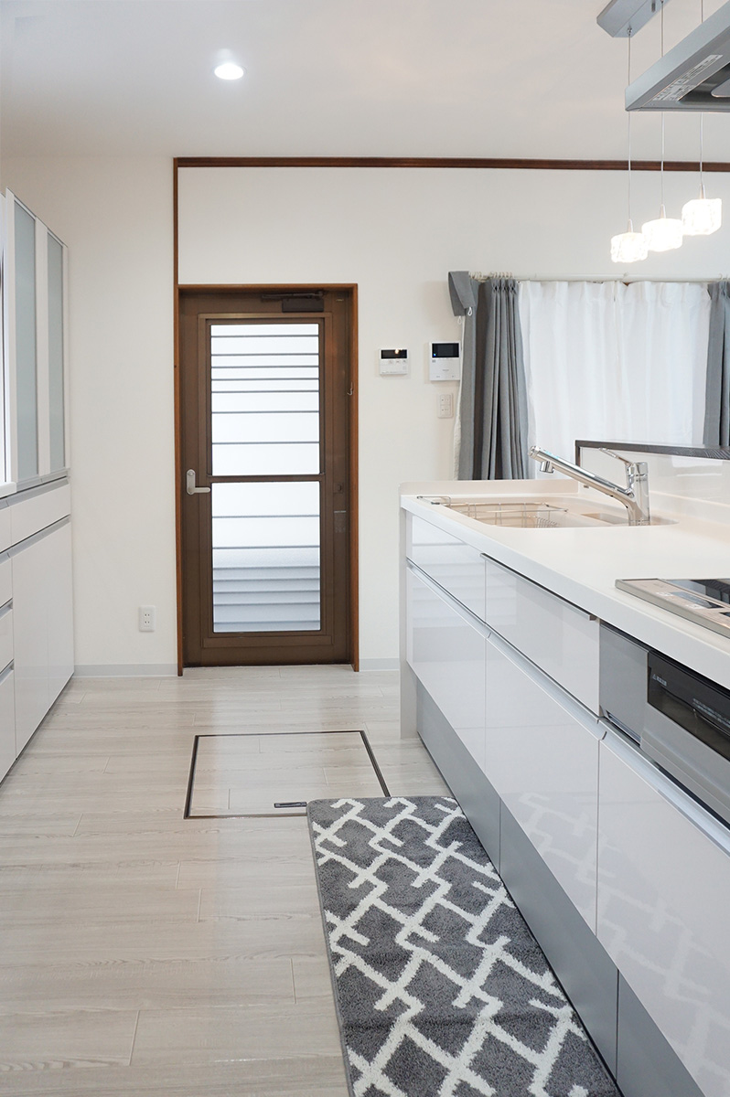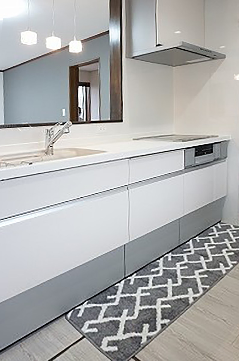 北面に向かって壁付けになっていたキッチンから対面キッチンに♪キッチン収納もセットで揃えました。内装も一新し、ガラッと印象が変りました。