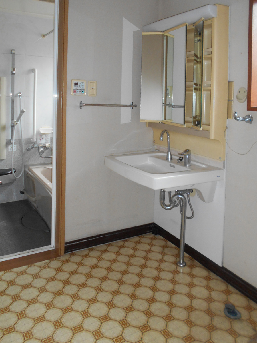 床下チェックで洗面給湯管の腐食が認められた為、交換をご提案。木造なので白蟻駆除を施すこともお勧めしました。洗面給湯管の腐食部分の交換に伴い、洗面化粧台も交換しました。