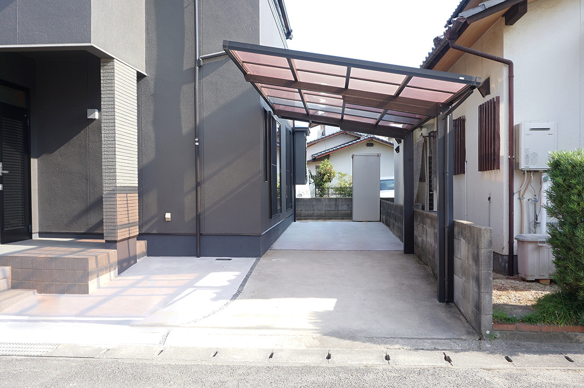 イメージ一新するためにダークトーンのカラーにし、別のお家のようになりました☆ 並列駐車ができるように駐車スペースも拡張しました。