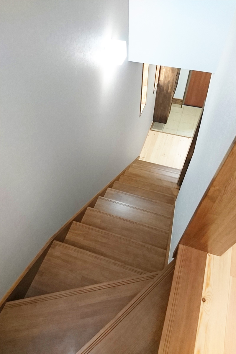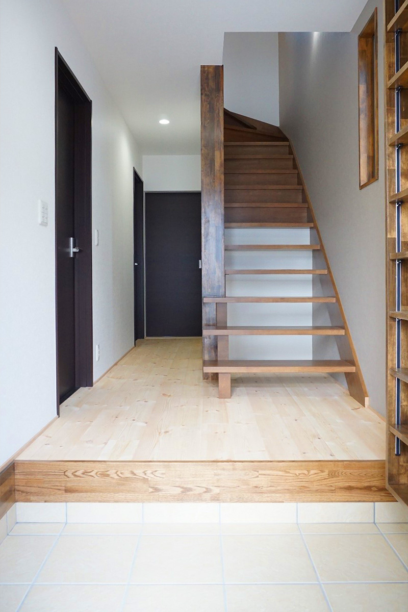 圧迫感があった為、階段の向きを変えたことで広さを感じる玄関ホールになりました。