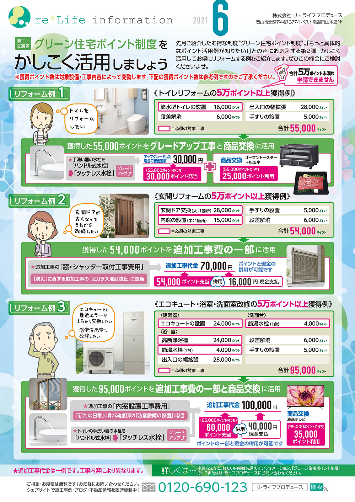 グリーン住宅ポイント制度をかしこく活用しましょう。 先月に引き続き第2弾!もっと具体的なポイント活用方法をご紹介します。 PDFダウンロード