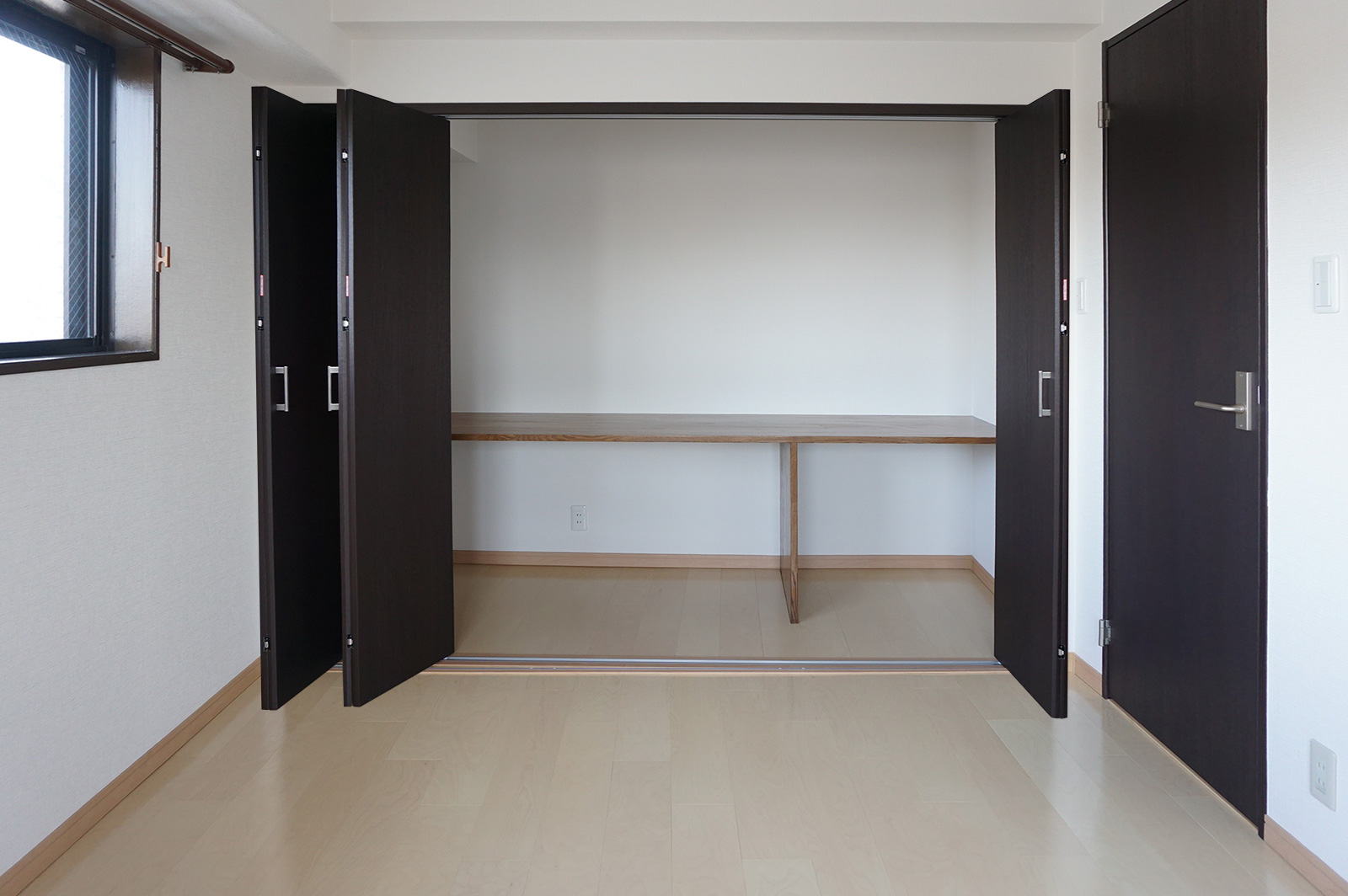 ご主人様が在宅でお仕事ができるワークスペースも確保しました。扉を閉めればスッキリ隠せます。