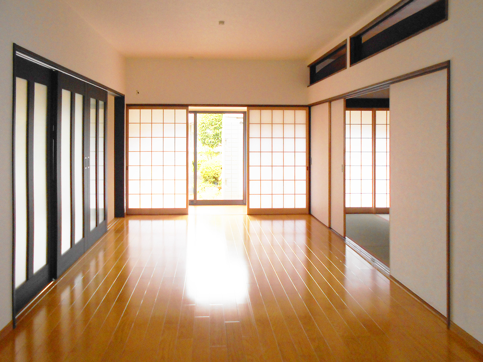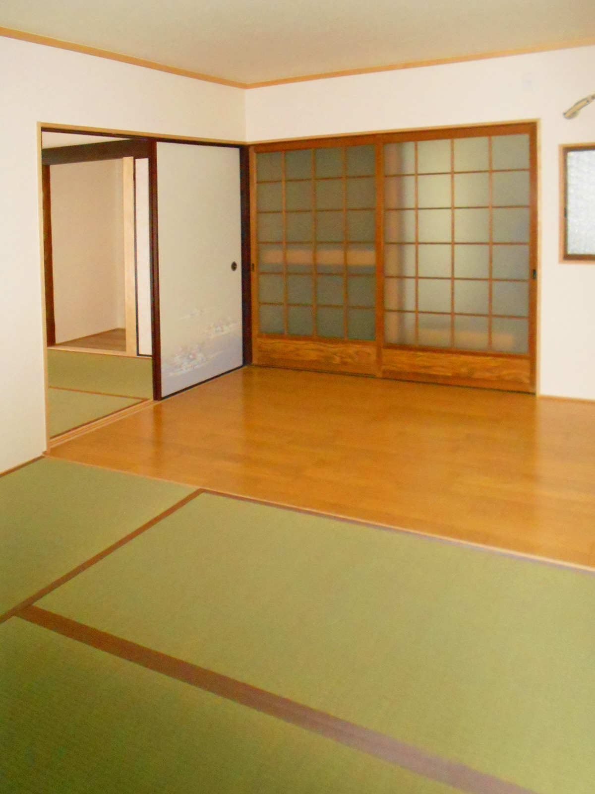 和室が4室、田の字に並ぶ間取りから和室は1室のみ残し、広々リビングに間取変更。間仕切りを取っただけで広さは変わっていないはずなのに随分広くなったように感じます。