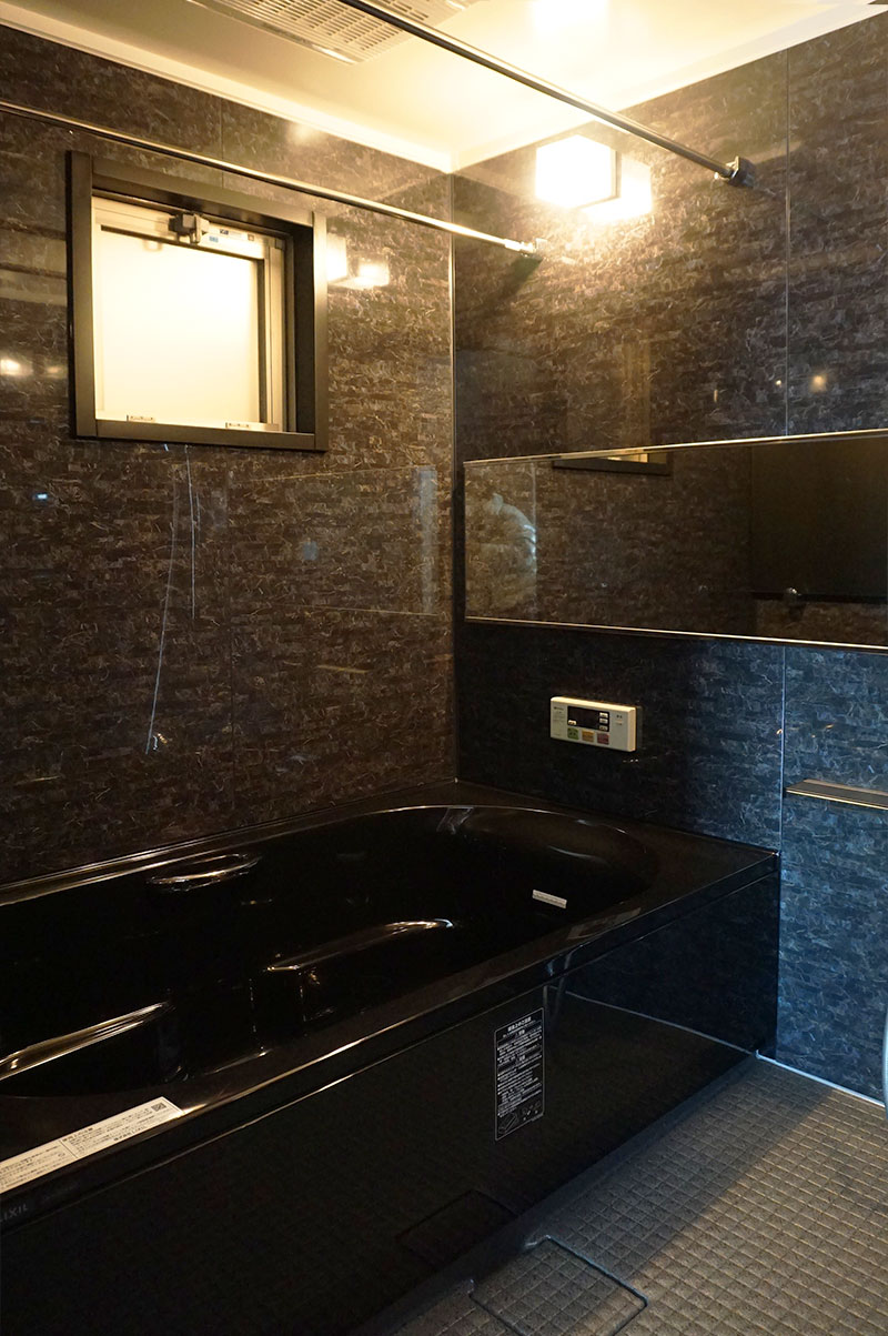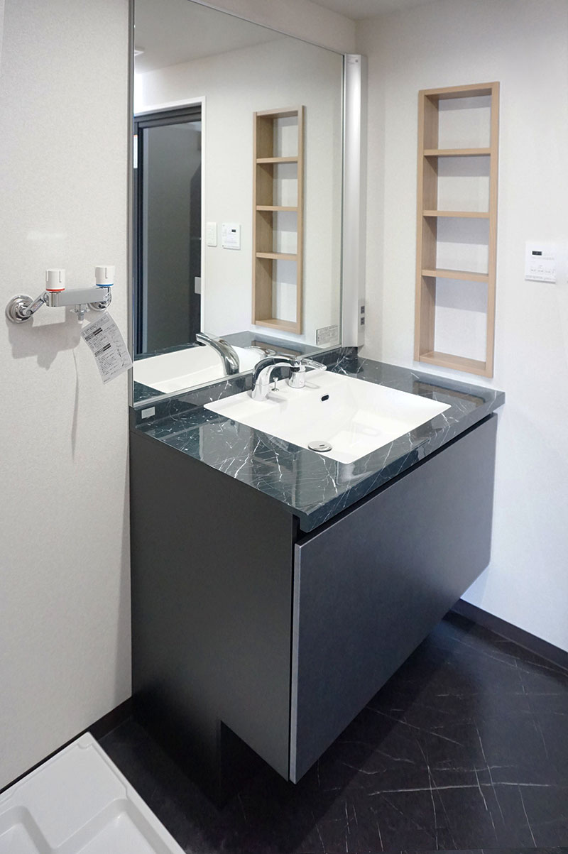 洗面台もお手入れがしやすい人工大理石のカウンターを採用されました。洗面~浴室はブラック系で統一されホテルライクなラグジュアリーな空間に☆