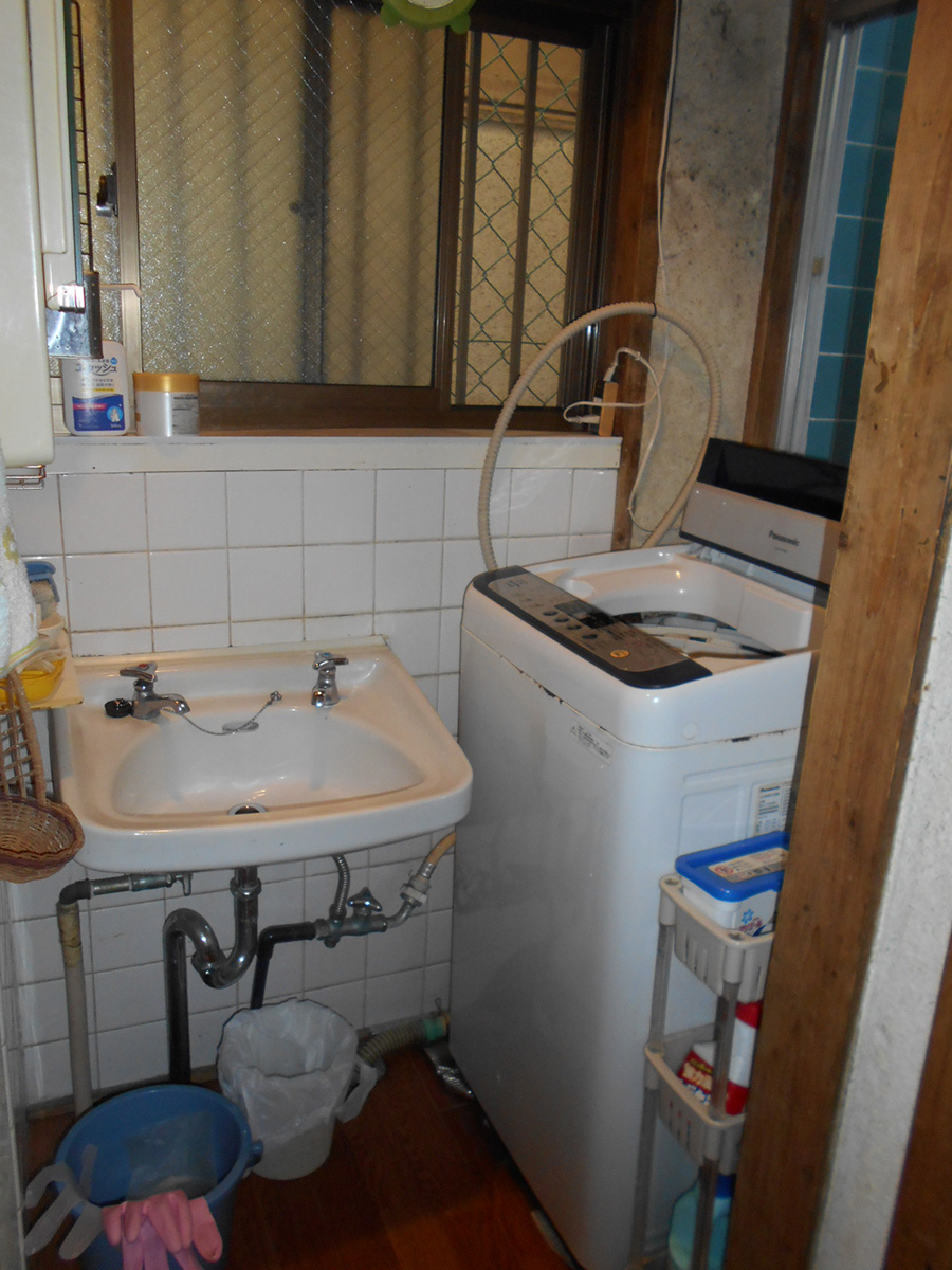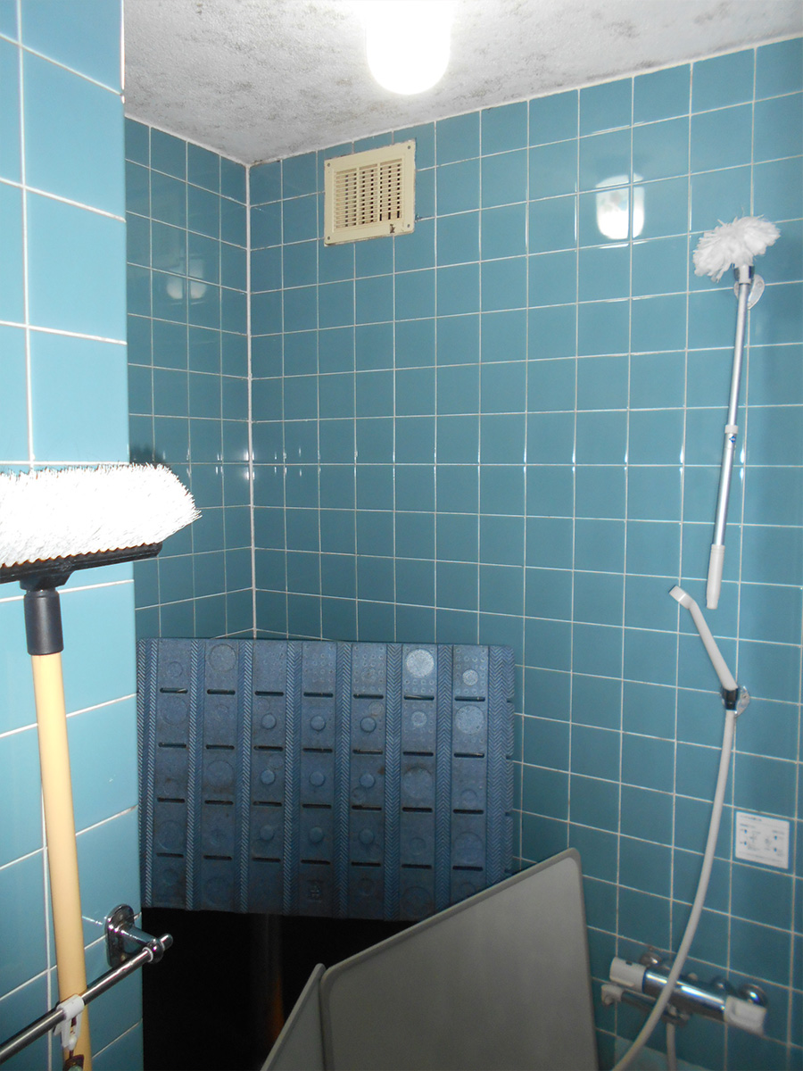 足を悪くされたお母様にとって昔ながらのタイルの浴室は入口の段差、滑りやすい床、またぎの高い浴槽…、と危険がいっぱいです。