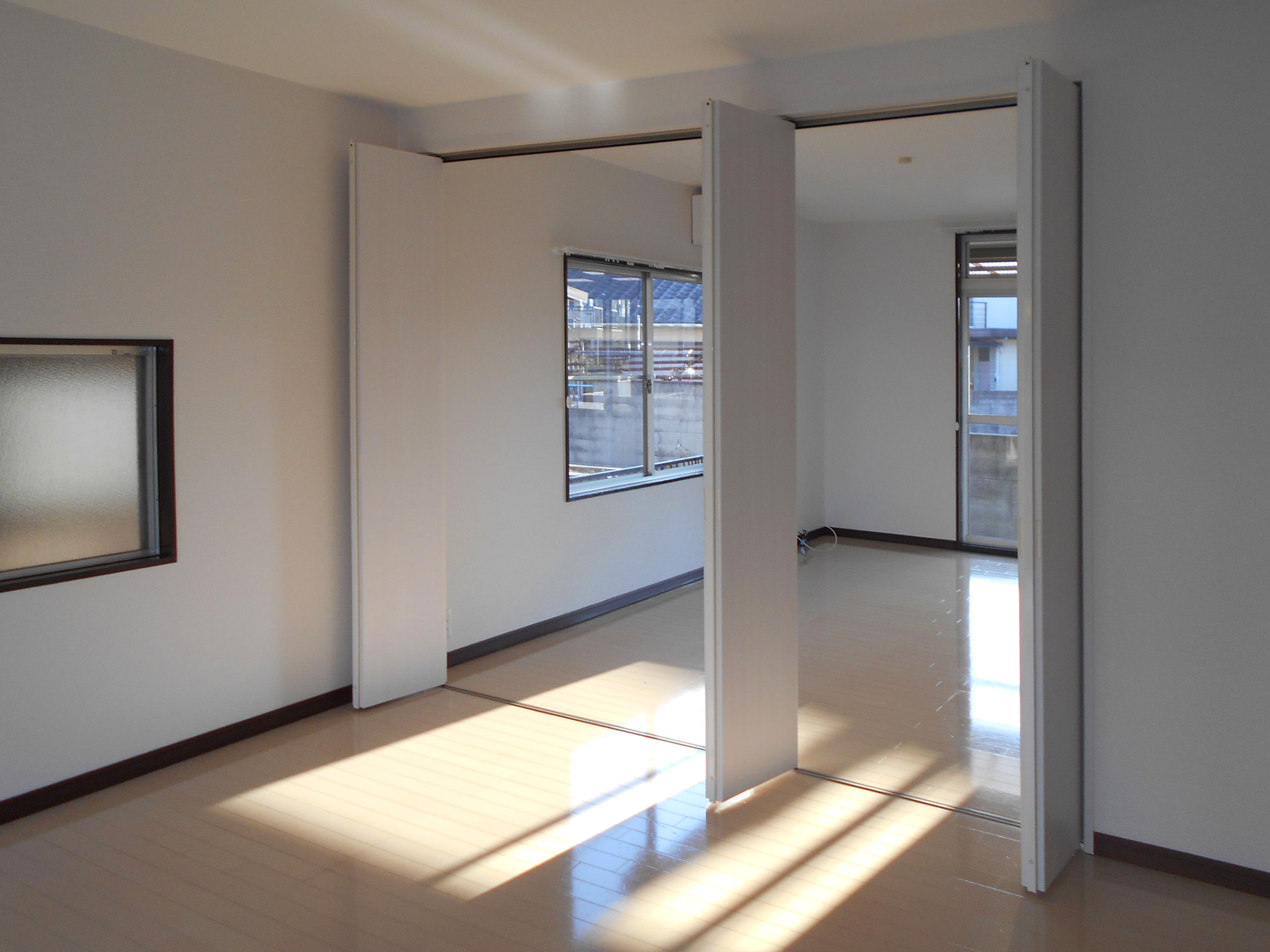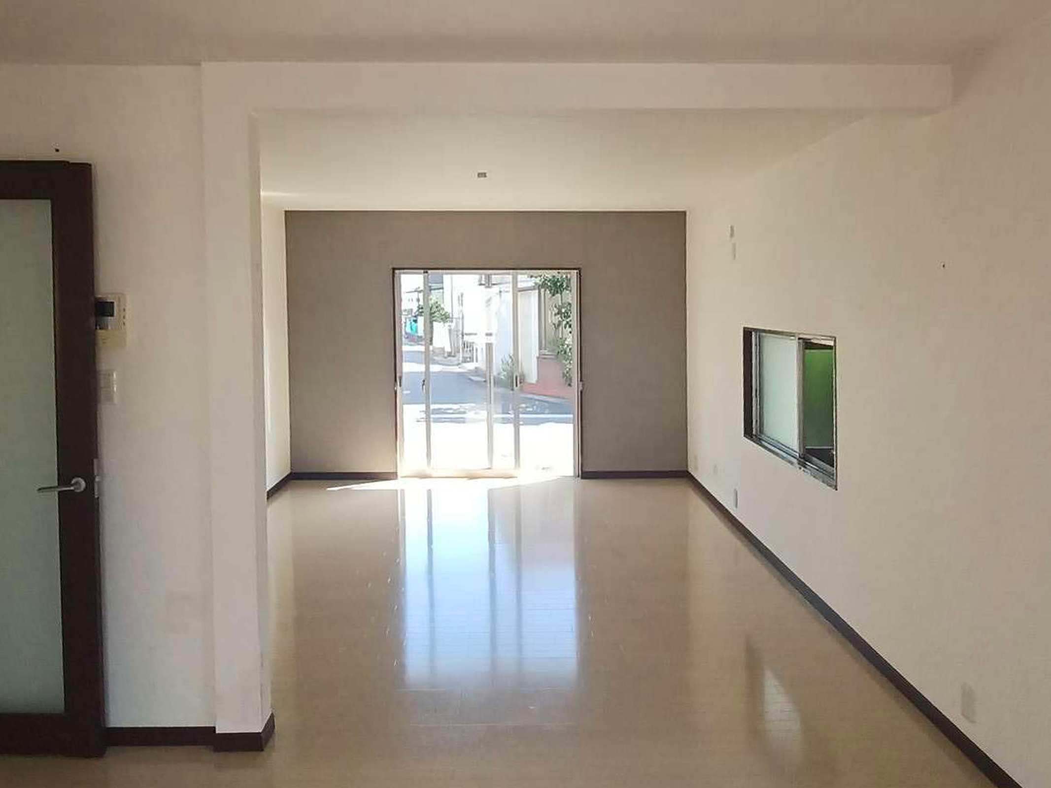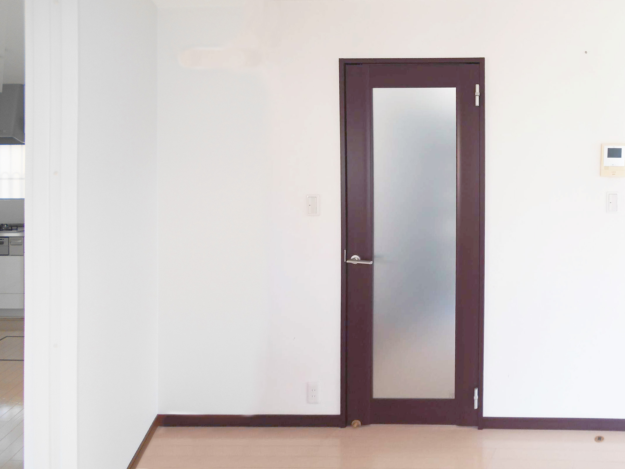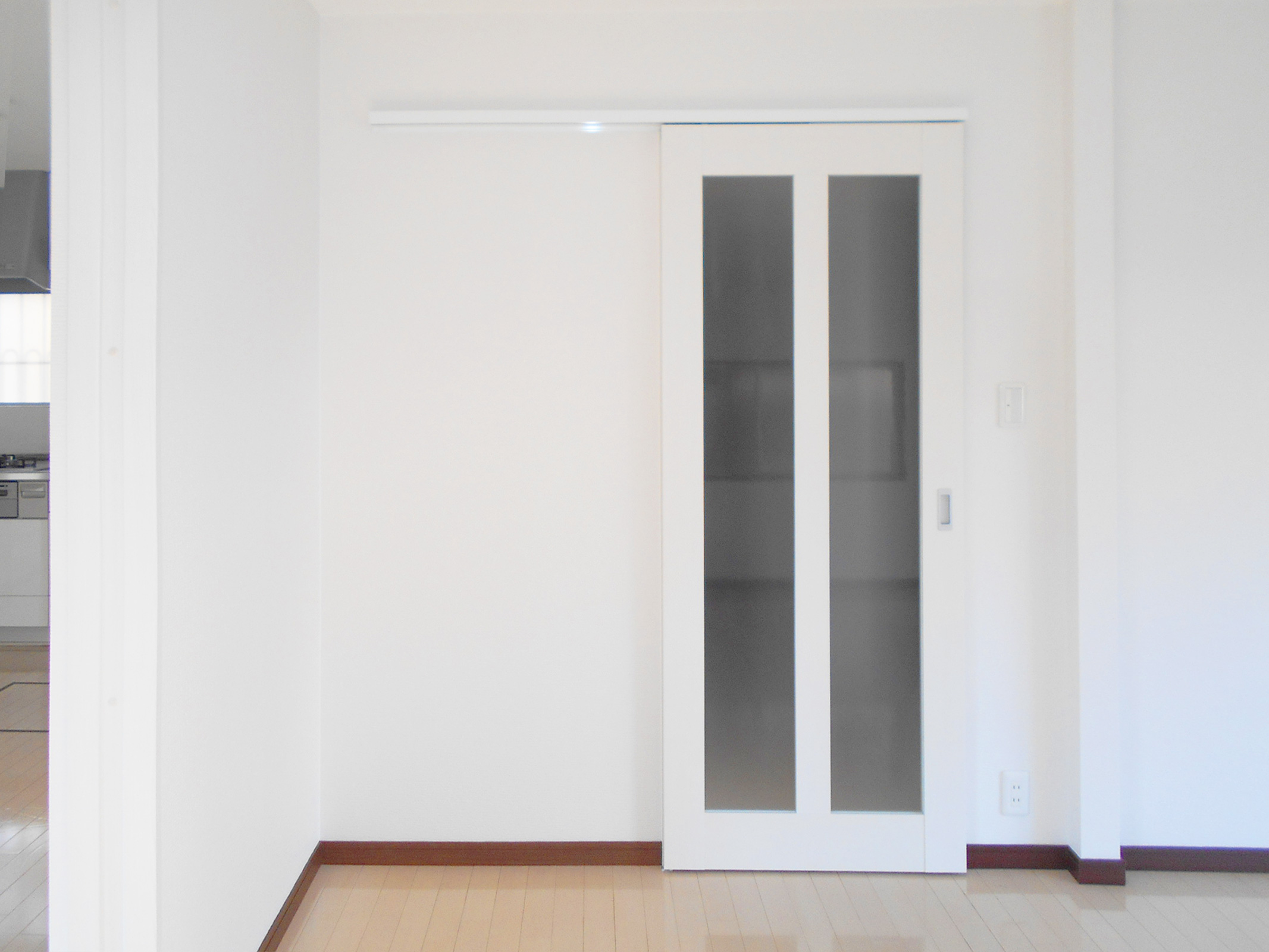 開戸から引戸に変更。以前のドアのノブが当たって壁が傷ついていた箇所も修繕して綺麗になりました。
