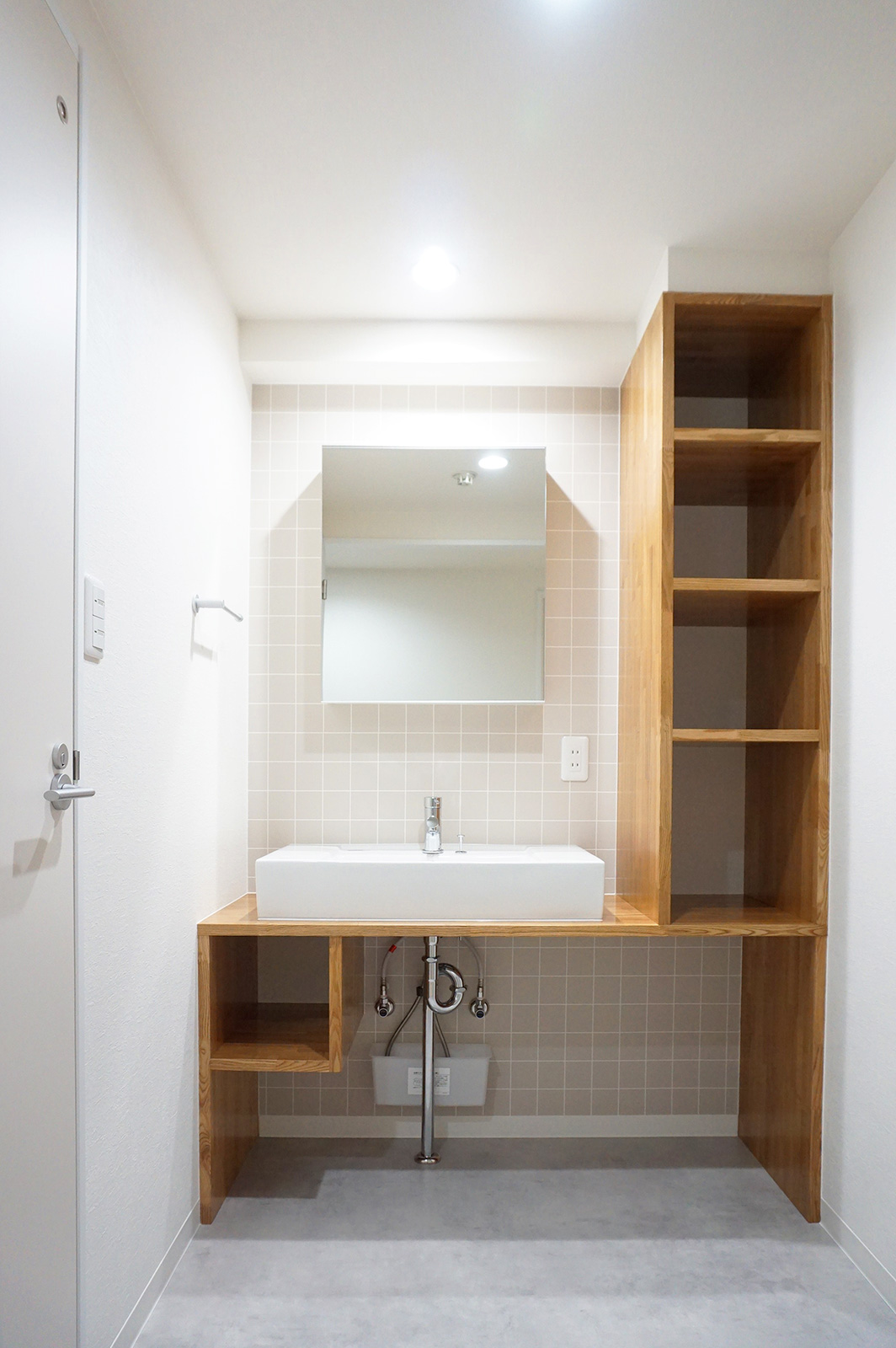 築40年経っているとは微塵も感じないお部屋に生まれ変わりました。洗面台はオリジナル造作カウンターにしました☆