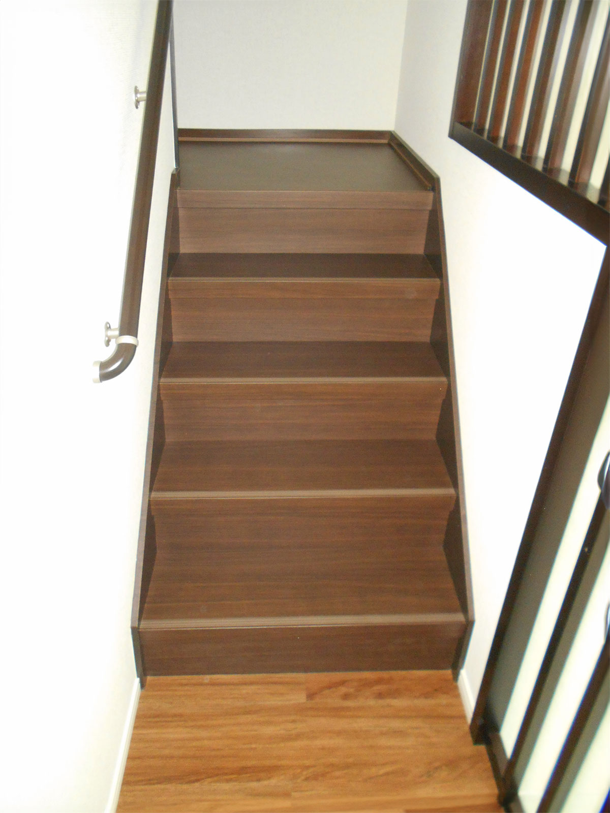 LDKから廊下、階段に至るまで全てジュータン敷きだったところをフローリングに改修。
