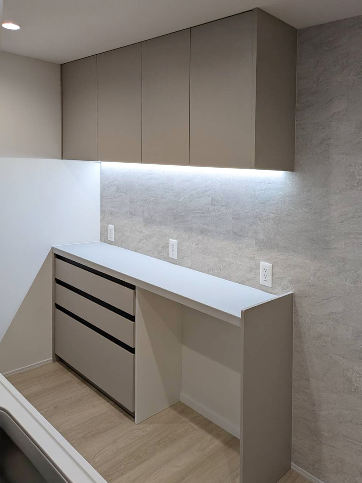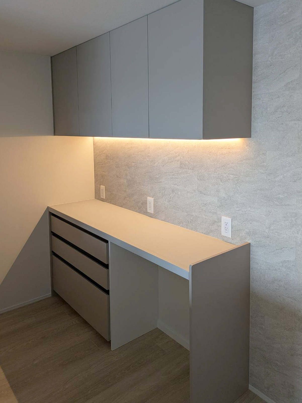 色々なメーカーのショールームへ熱心に足を運ばれ悩みに悩んで選んだキッチンです。タイミング良く新色が発表され今までなかったグレー色を選ぶ事ができました。