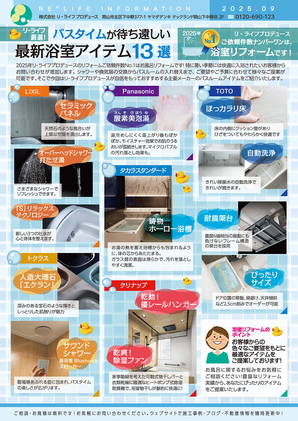 2025年リ・ライフプロデュースのリフォームご依頼件数No.1はお風呂リフォームです!